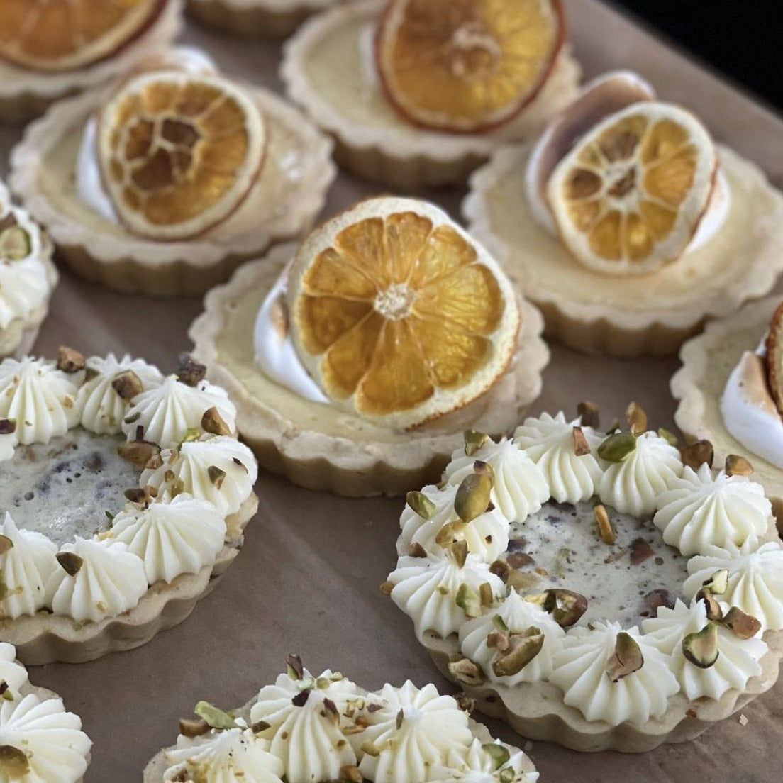 For the love of pie. This delicious box is packed with six different pie flavors. This is the perfect opportunity to try our pies and enjoy a delicious dessert. This box is extra special cause it includes only pies and tarts! It honey coconut tart, pistachio pie, orange & passion fruit cheesecake pie, hazelnut brownie tart, key lime and cheesecake pie, and apple crumble pie. This box is available for pick up on SATURDAY, JAN 18th, 2025 from 12pm-5pm.